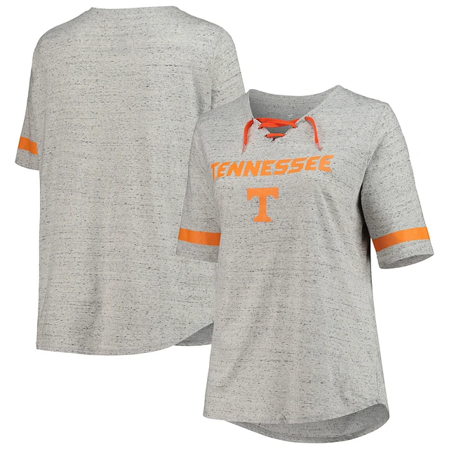 Women's Heathered Gray Tennessee Volunteers Plus Lace-Up V-Neck T-Shirt