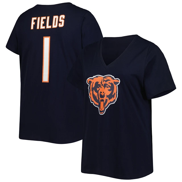 Women's Justin Fields Navy Chicago Bears Plus Fair Catch Name & Number V-Neck T-Shirt