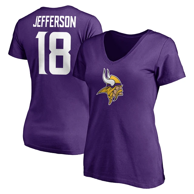 Women's Justin Jefferson Purple Minnesota Vikings Player Icon Name & Number V-Neck T-Shirt