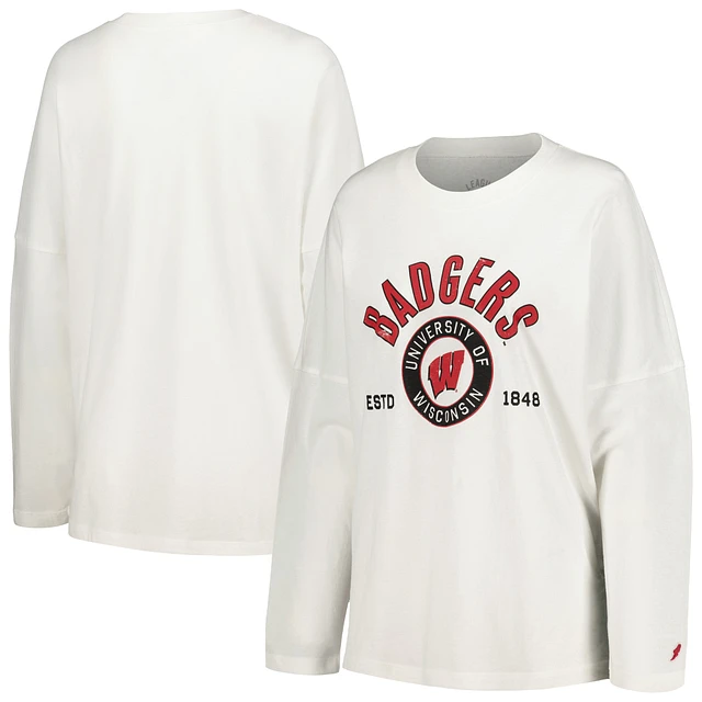 Women's League Collegiate Wear White Wisconsin Badgers Clothesline Oversized Long Sleeve T-Shirt