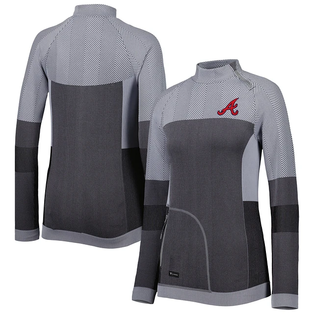 Women's Levelwear Charcoal Atlanta Braves Verse Asymmetrical Raglan Tri-Blend Quarter-Zip Jacket