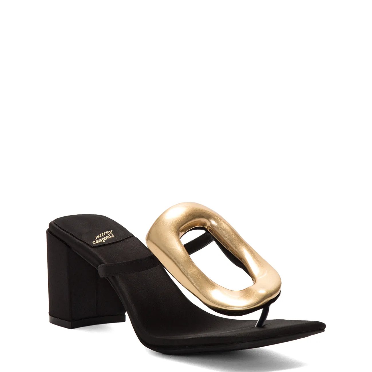 The Jeffrey Campbell Linq MH Heeled Sandal is a standout style with bold, statement hardware. This open square toe slip-on features a sleek block heel, adding a modern edge to any look. Eye-catching yet effortless, it's made to elevate your everyday.
