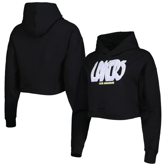 Women's Lusso Black Los Angeles Lakers Layla World Tour Cropped Pullover Hoodie