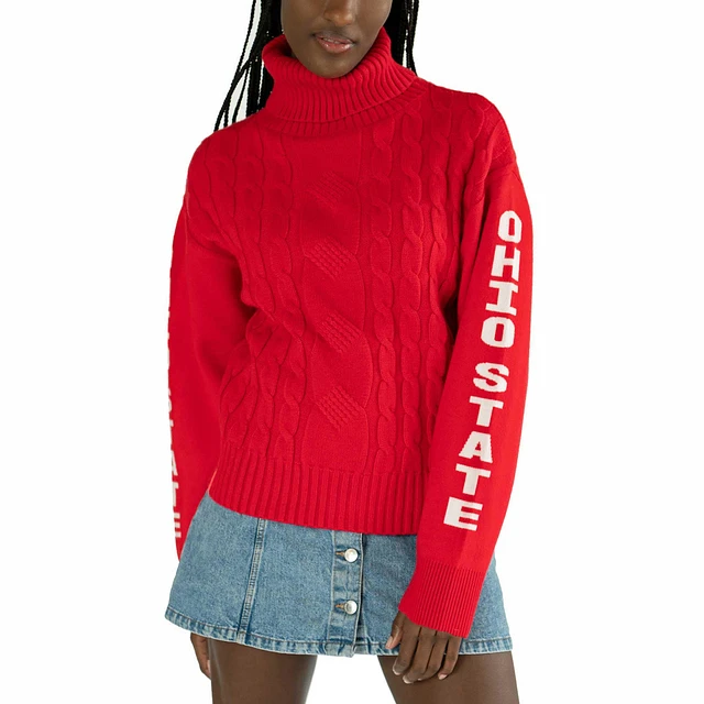 Women's Lusso Scarlet Ohio State Buckeyes Sylvie Cable Knit Turtleneck Pullover Sweater