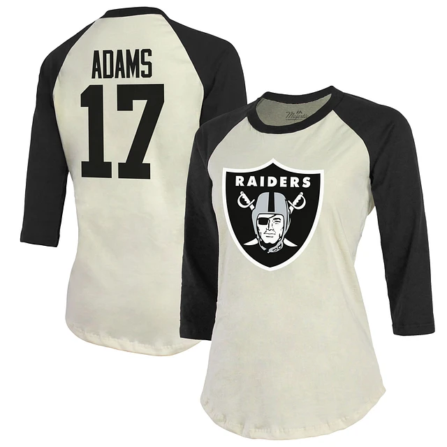 Women's Majestic Threads Davante Adams Cream/Black Las Vegas Raiders Player Raglan Name & Number Fitted 3/4-Sleeve T-Shirt