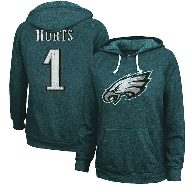 Women's Majestic Threads Jalen Hurts Midnight Green Philadelphia Eagles Name & Number Tri-Blend Pullover Hoodie