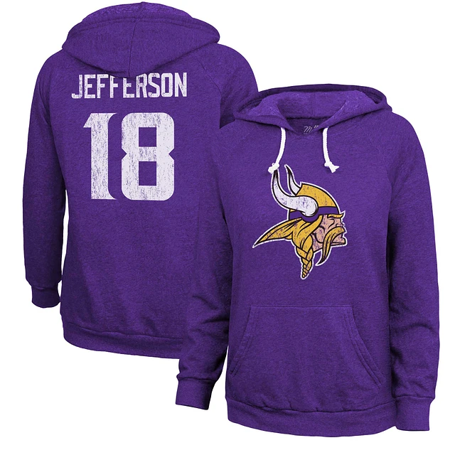 Women's Majestic Threads Justin Jefferson Purple Minnesota Vikings Name & Number Tri-Blend Pullover Hoodie