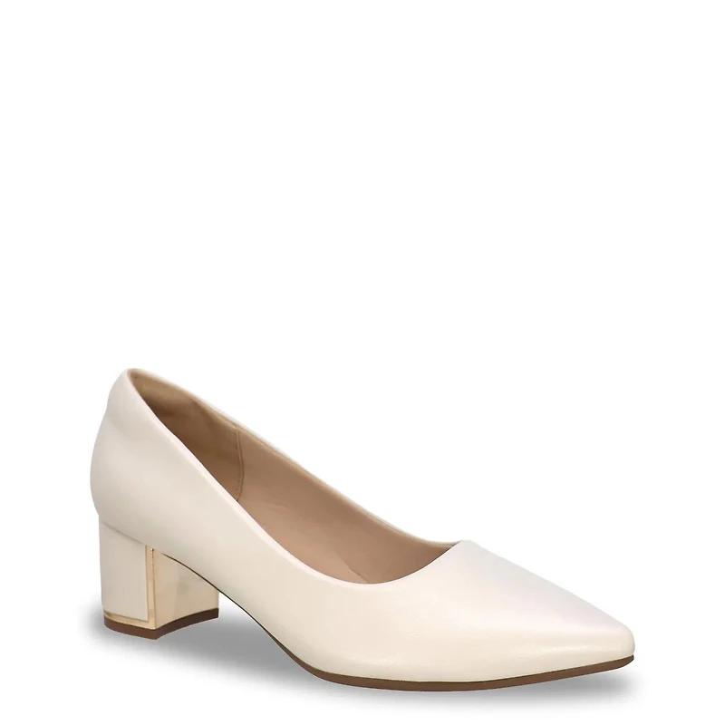 Step into effortless elegance with the Mikayla off white pump by Kelly and Katie. Designed for the modern woman, its sleek almond toe and covered block heel offer both style and stability. Crafted with a synthetic upper and lining, plus a comfort footbed, this slip-on pump ensures all-day ease. Versatile and chic, it perfectly complements any outfit, making every step confident and graceful. This style is exclusive to Designer Brands Canada.