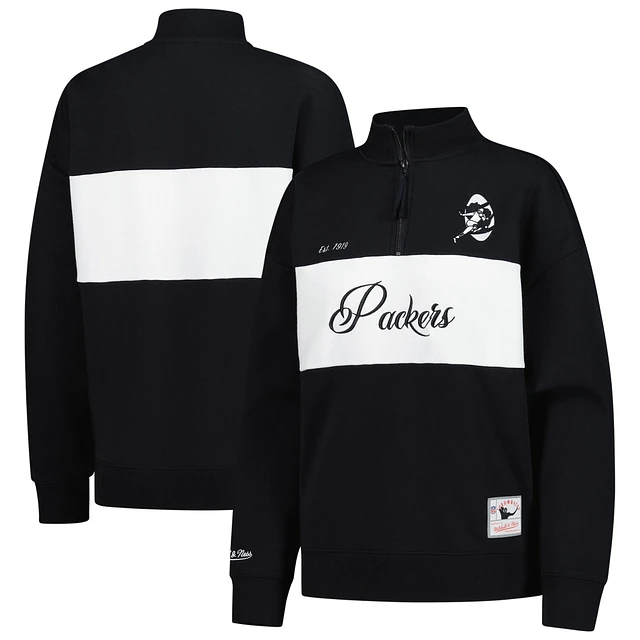 Women's Mitchell & Ness Black Green Bay Packers Quarter-Zip Jacket