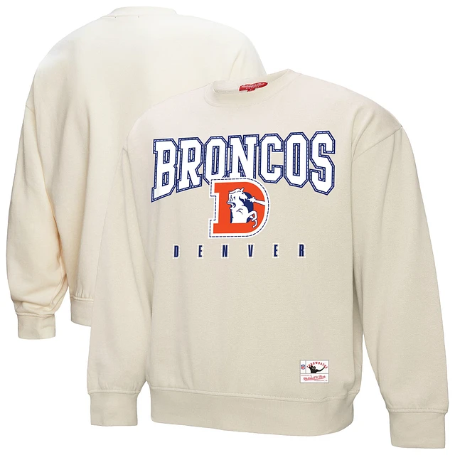 Women's Mitchell & Ness Cream Denver Broncos Fandom Fleece Pullover Sweatshirt
