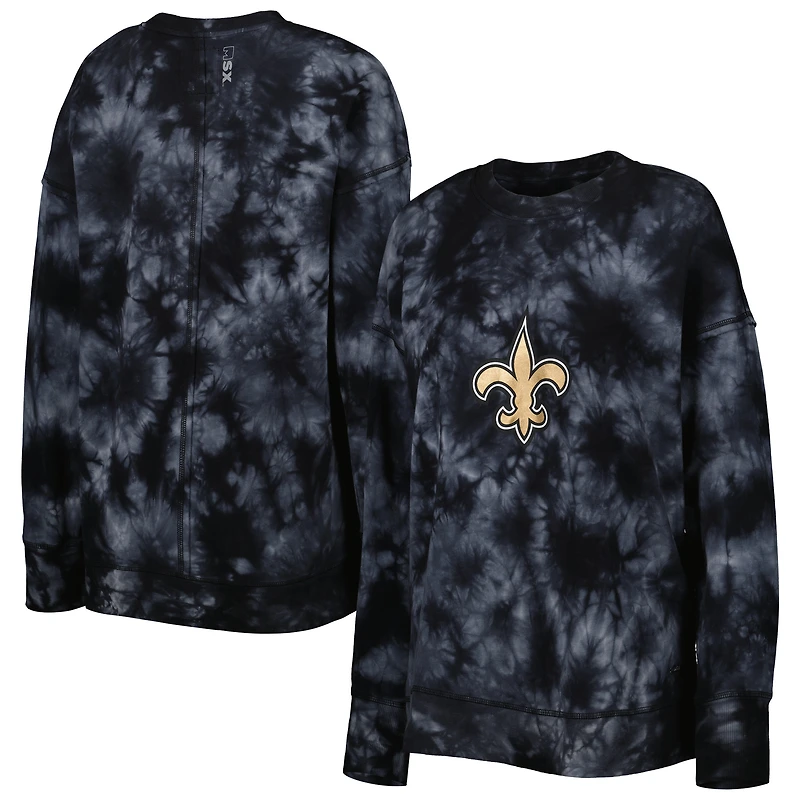 Women's MSX by Michael Strahan Black New Orleans Saints Bailey Tie-Dye Tri-Blend Pullover Sweatshirt in Vernon, BC