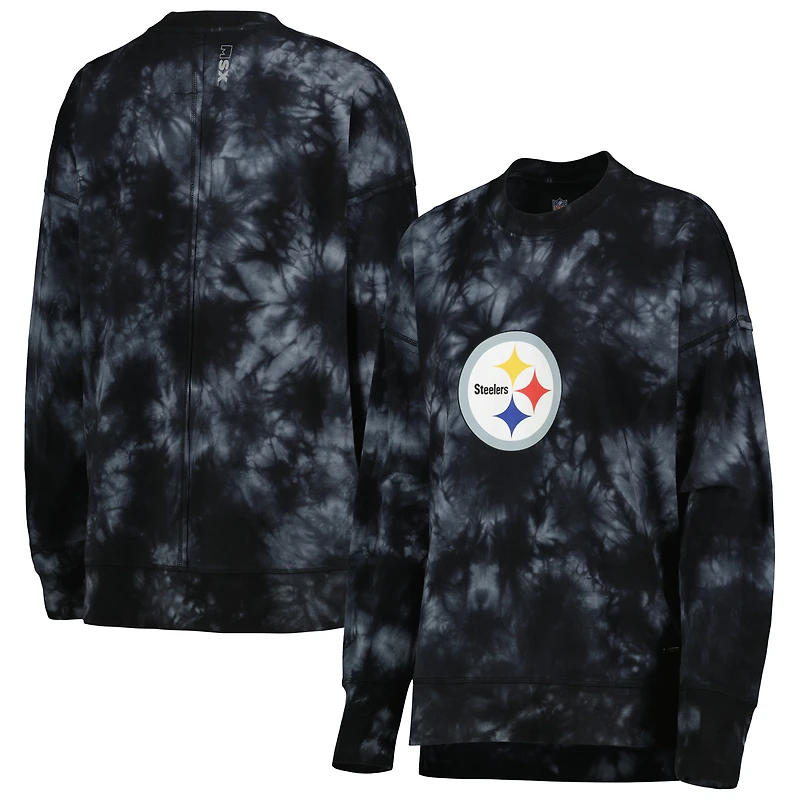 Women's MSX by Michael Strahan Black Pittsburgh Steelers Bailey Tie-Dye Tri-Blend Pullover Sweatshirt
