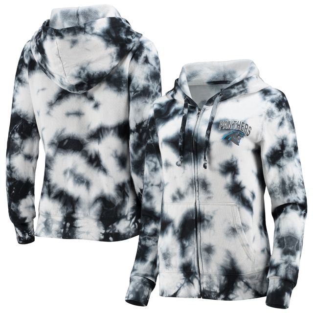 Women's New Era Black Carolina Panthers Tie-Dye Fleece Full-Zip Hoodie
