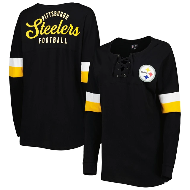 Women's New Era Black Pittsburgh Steelers Athletic Varsity Lightweight Lace-Up Long Sleeve T-Shirt