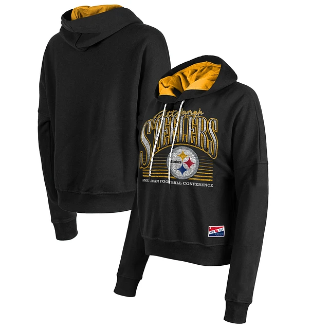 Women's New Era Black Pittsburgh Steelers Boxy Pullover Hoodie
