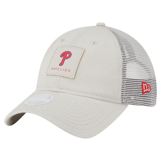 Women's New Era Light Beige Philadelphia Phillies Square Stitch 9TWENTY Adjustable Hat