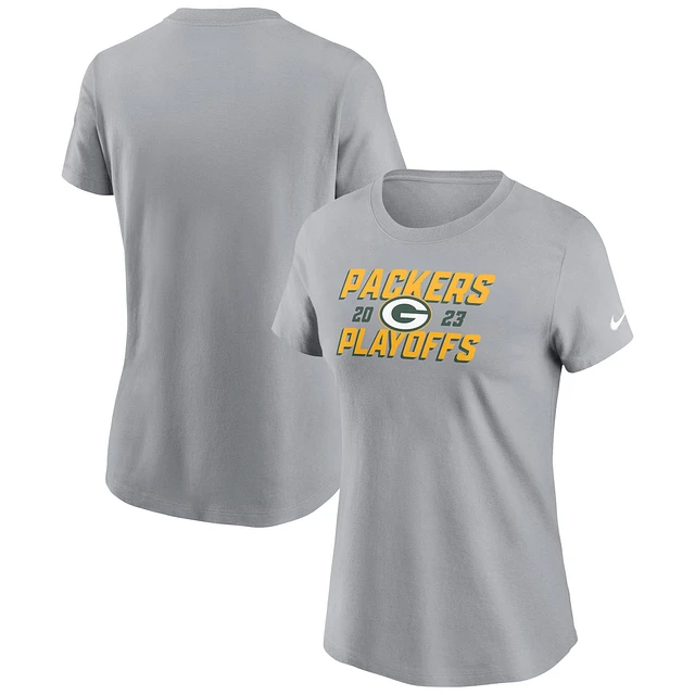 Women's Nike Gray Green Bay Packers 2023 NFL Playoffs Iconic T-Shirt