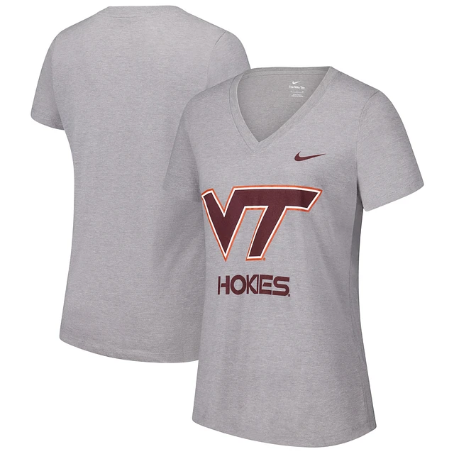 Women's Nike Gray Virginia Tech Hokies Script Over Logo Tri-Blend V-Neck T-Shirt