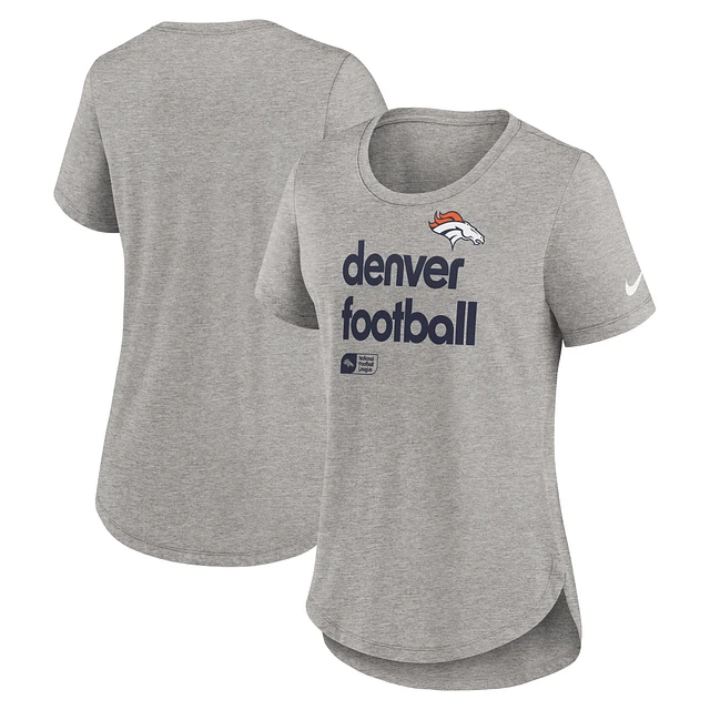 Women's Nike Heather Gray Denver Broncos Fashion Tri-Blend T-Shirt