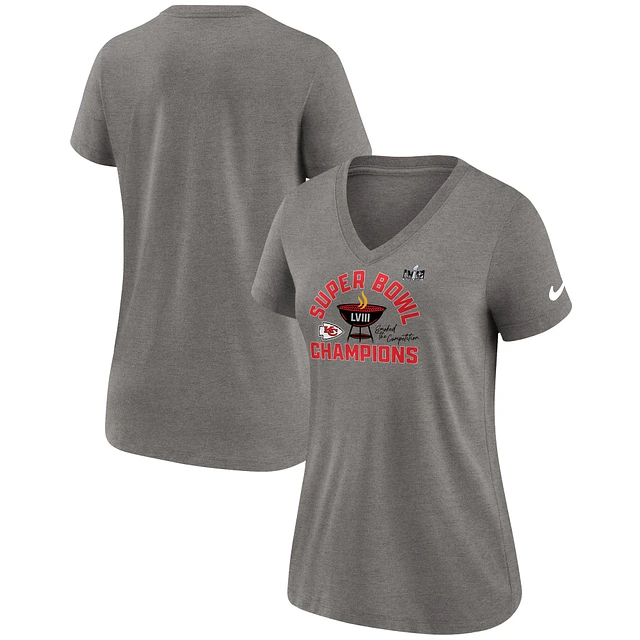 Women's Nike Heather Gray Kansas City Chiefs Super Bowl LVIII Champions Local Tri-Blend V-Neck T-Shirt