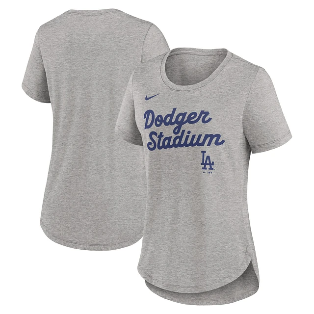 Women's Nike Heather Gray Los Angeles Dodgers Script Tri-Blend T-Shirt