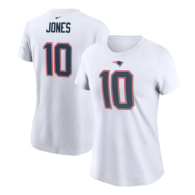 Women's Nike Mac Jones White New England Patriots Name & Number T-Shirt