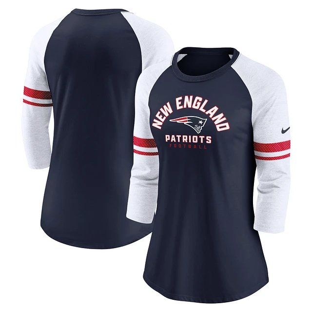 Women's Nike Navy New England Patriots 3/4-Sleeve Lightweight Raglan Fashion T-Shirt