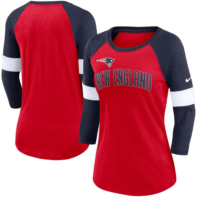 Women's Nike New England Patriots Heather Red/Heather Navy Football Pride Raglan 3/4-Sleeve T-Shirt