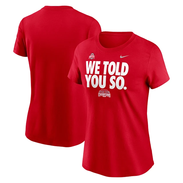 Women's Nike Scarlet Ohio State Buckeyes College Football Playoff 2024 National Champions We Told You So T-Shirt
