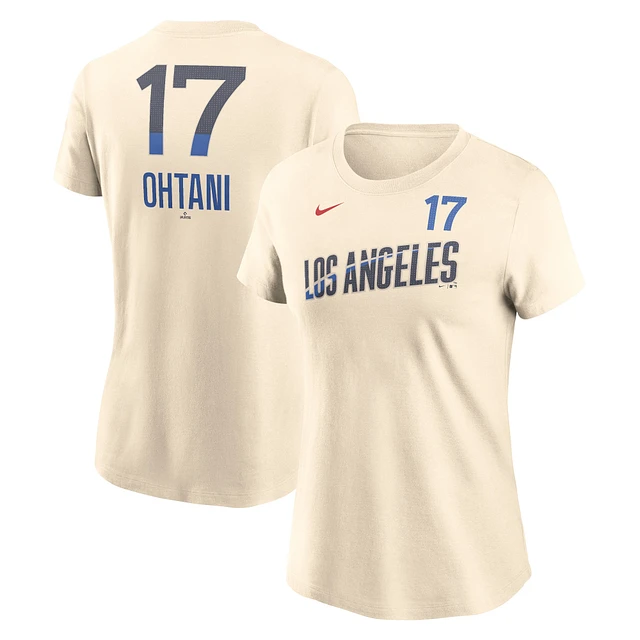 Women's Nike Shohei Ohtani Cream Los Angeles Dodgers 2024 City Connect Fuse Name & Number T-Shirt