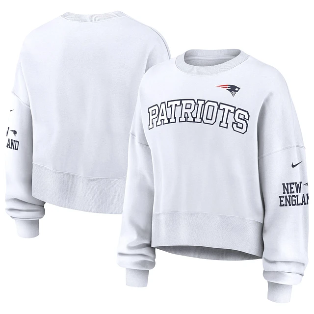 Women's Nike White New England Patriots Oversized Long Sleeve Cropped Sweatshirt