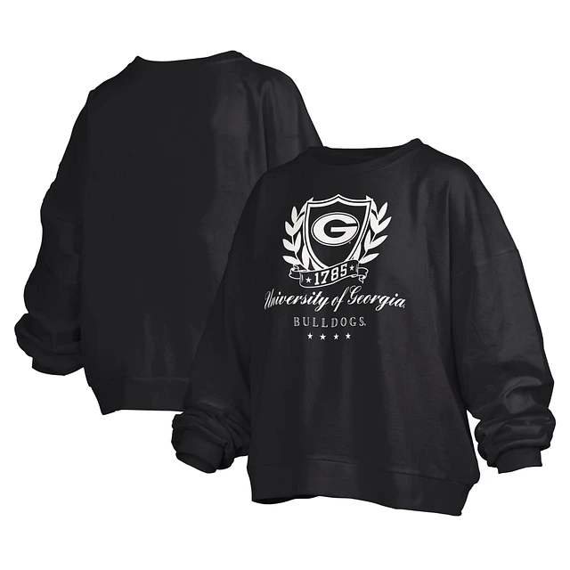 Women's Pressbox Black Georgia Bulldogs Big Aug Script Janice Oversized Pullover Sweatshirt