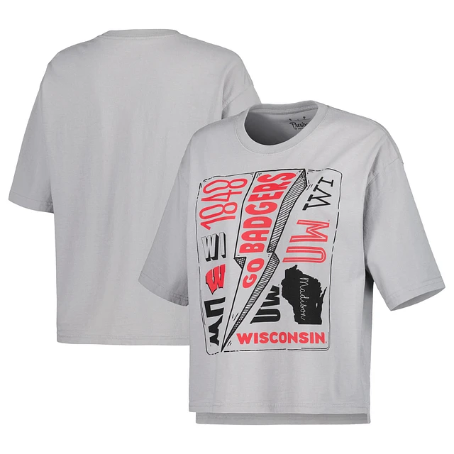 Women's Pressbox Silver Wisconsin Badgers Rock & Roll School of T-Shirt
