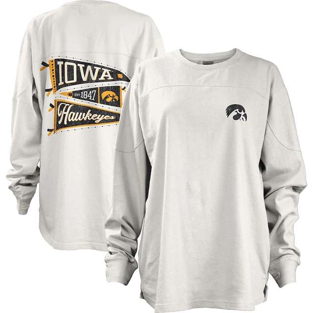 Women's Pressbox White Iowa Hawkeyes Pennant Stack Oversized Long Sleeve T-Shirt