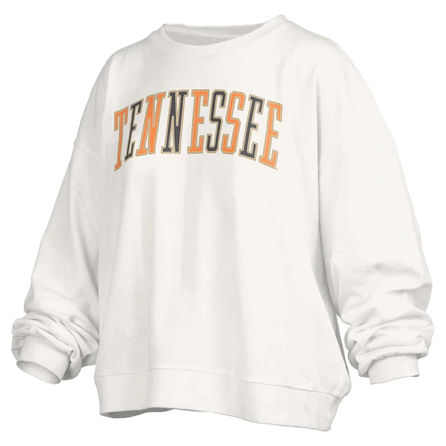Women's Pressbox White Tennessee Volunteers Janise Sequin Waist Length Oversized Pullover Sweatshirt