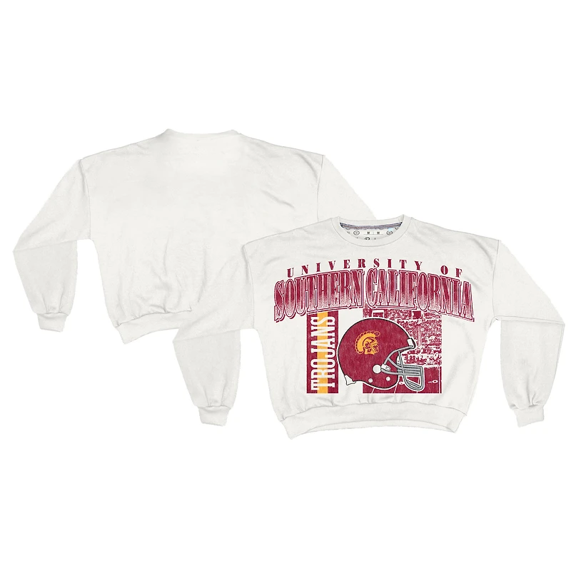 Women's Pressbox White USC Trojans Oversized Janice Retro Waist-Length Sweatshirt in Vernon, BC