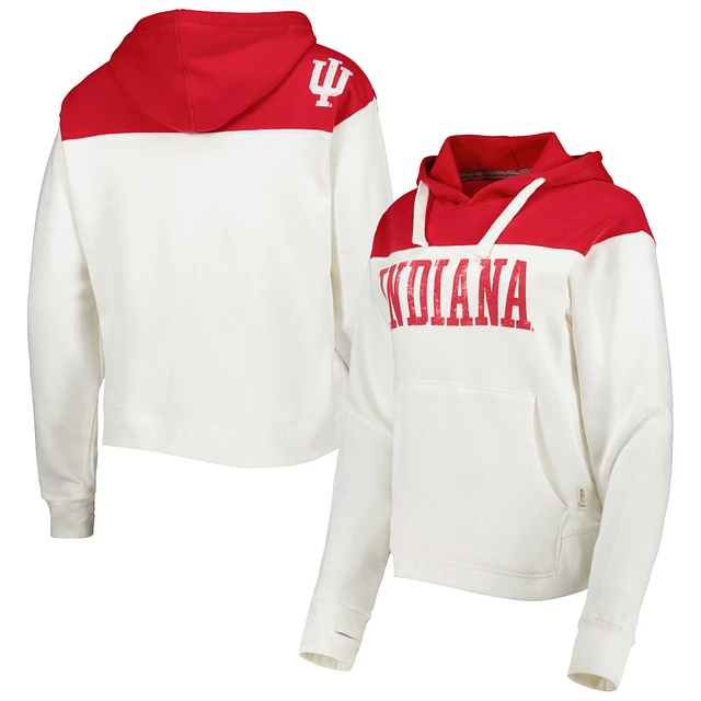 Women's Pressbox White/Crimson Indiana Hoosiers Chicago 2-Hit Yoke Pullover Hoodie
