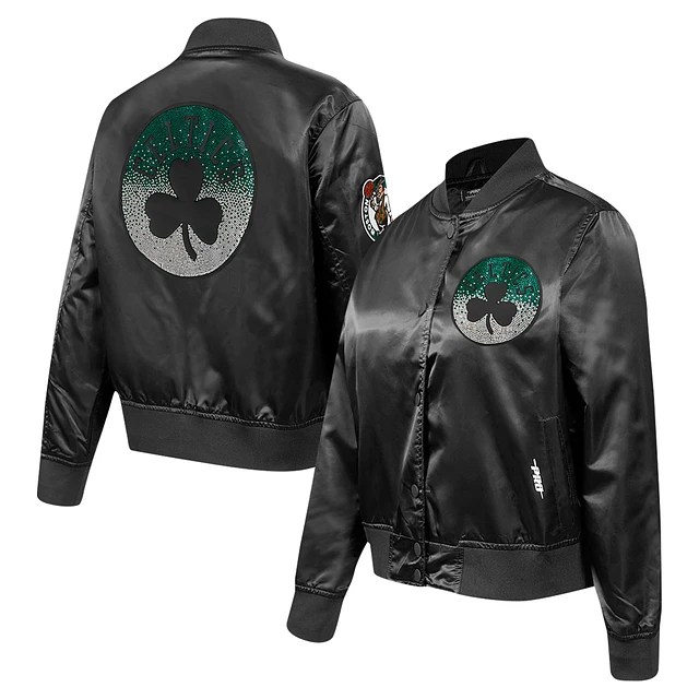 Women's Pro Standard Black Boston Celtics Jeweled Satin Full-Snap Jacket
