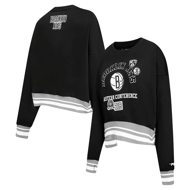 Women's Pro Standard Black Brooklyn Nets Area Code Cropped Pullover Sweatshirt