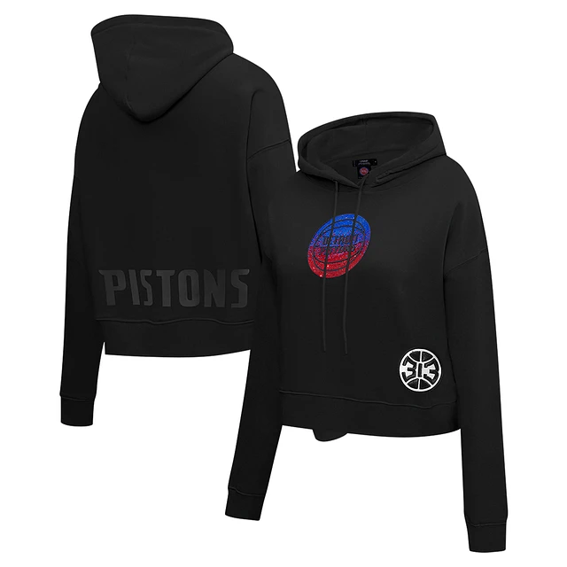 Women's Pro Standard Black Detroit Pistons Jewels Cropped Pullover Hoodie