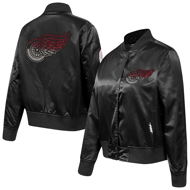 Women's Pro Standard Black Detroit Red Wings Rhinestone Jewels Satin Full-Snap Jacket
