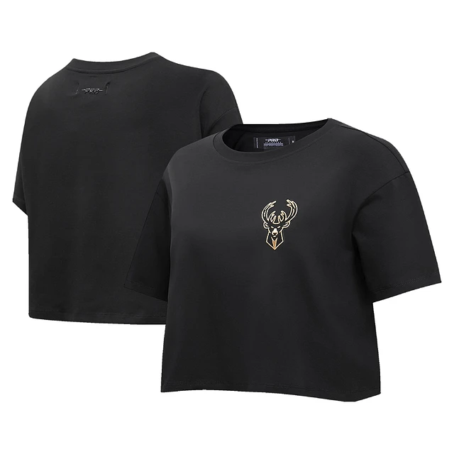 Women's Pro Standard Black Milwaukee Bucks Holiday Glam Boxy T-Shirt