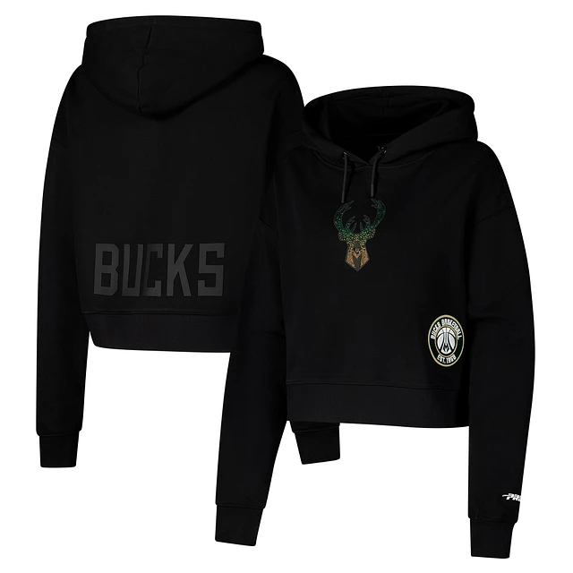 Women's Pro Standard Black Milwaukee Bucks Jewels Cropped Pullover Hoodie