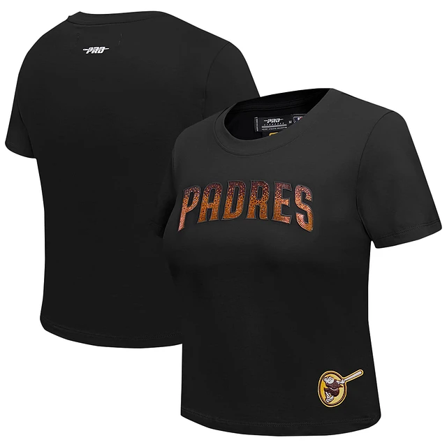 Women's Pro Standard Black San Diego Padres Rhinestone Slim Fit T-Shirt