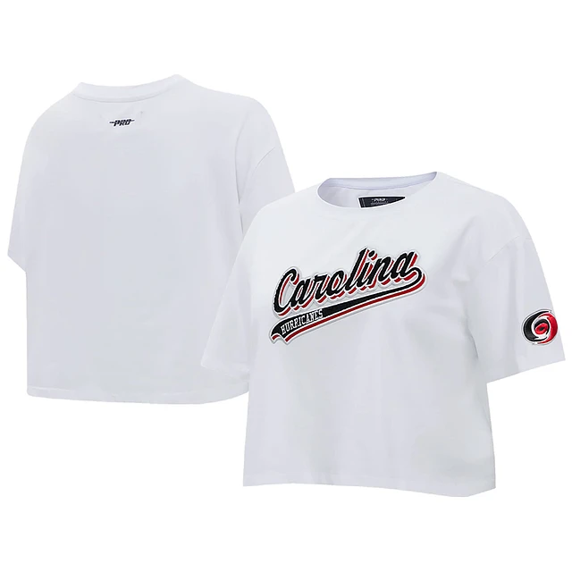 Women's Pro Standard White Carolina Hurricanes Boxy Script Tail Cropped T-Shirt