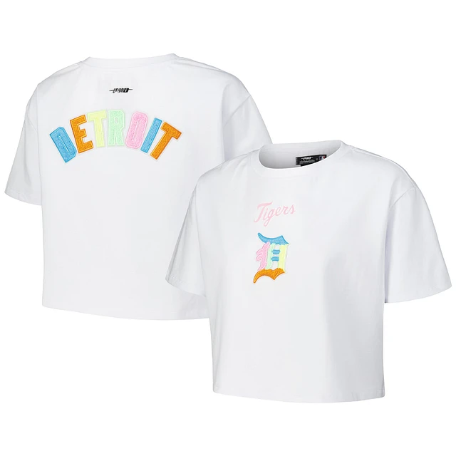 Women's Pro Standard White Detroit Tigers Washed Neon Cropped Boxy T-Shirt