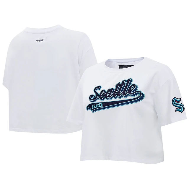 Women's Pro Standard White Seattle Kraken Boxy Script Tail Cropped T-Shirt