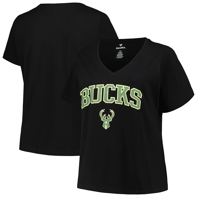 Women's Profile Black Milwaukee Bucks Plus Arch Over Logo V-Neck T-Shirt
