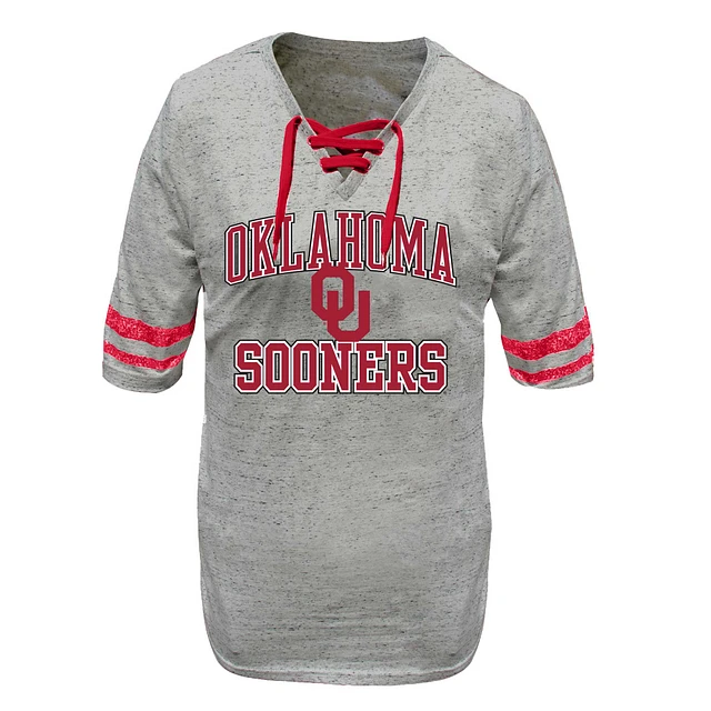 Women's Profile Heather Gray Oklahoma Sooners Plus Striped Lace-Up V-Neck T-Shirt