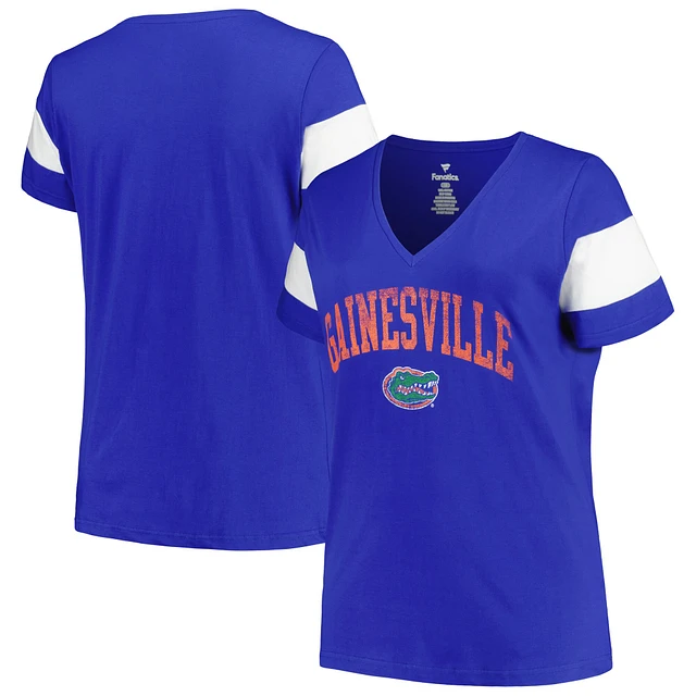 Women's Profile Heather Royal Florida Gators Plus Arched City Sleeve Stripe V-Neck T-Shirt